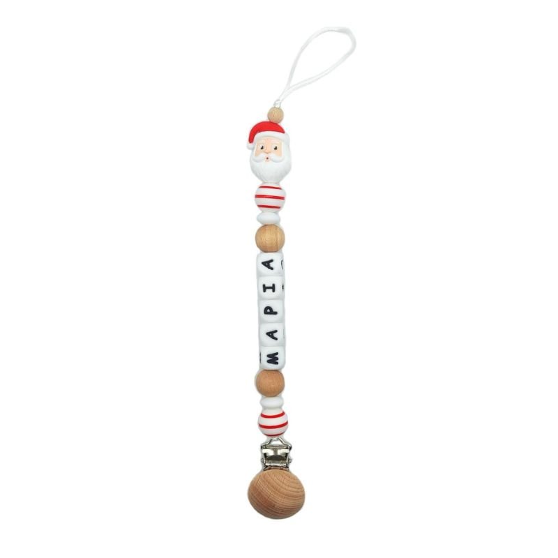 Χριστουγεννιάτικο κλιπ πιπίλας με χάντρες σιλικόνης- Άγιος Βασίλης