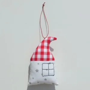 Σετ δώρου Χριστουγεννιάτικο κουτί για παιδιά που περιλαμβάνει 3 χειροποίητα υφασμάτινα στολίδια: Ξωτικό, Σπιτάκι, Δεντράκι.