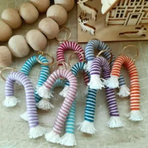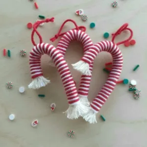 Xειροποίητο μίνι χριστουγεννιάτικο γλειφιτζούρι-μπαστούνι, με βαμβακερά νήματα και σχοινιά.