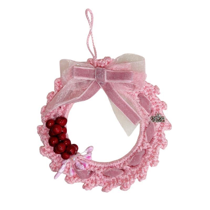 Χριστουγεννιάτικο ροζ πλεκτό στεφανάκι γούρι 2026
