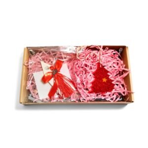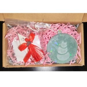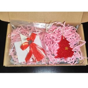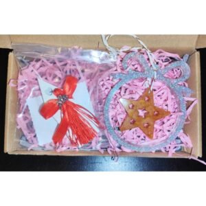 Σετ Χριστουγεννιάτικο δώρο που αποτελείται από ένα γούρι σπιτάκι από πορσελάνη και ένα χριστουγεννιάτικο στολίδι από υγρό γυαλί.