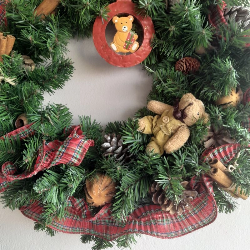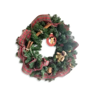Χριστουγεννιάτικο στεφάνι διακοσμημένο με φυσικά στοιχεία, (κανέλα, κουκουνάρια, κ.α).