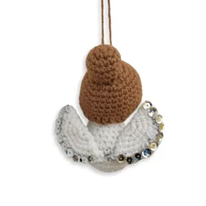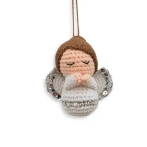 Αυτός ο μικρός, γλυκός Άγγελος Amigurumi είναι φτιαγμένος με αγάπη για να προσφέρει μια αίσθηση ηρεμίας και προστασίας στον χώρο σας. Με τα χέρια του σε δέηση και τα μάτια του κλειστά, αποτελεί ένα διακριτικό και συγκινητικό κρεμαστό στολίδι