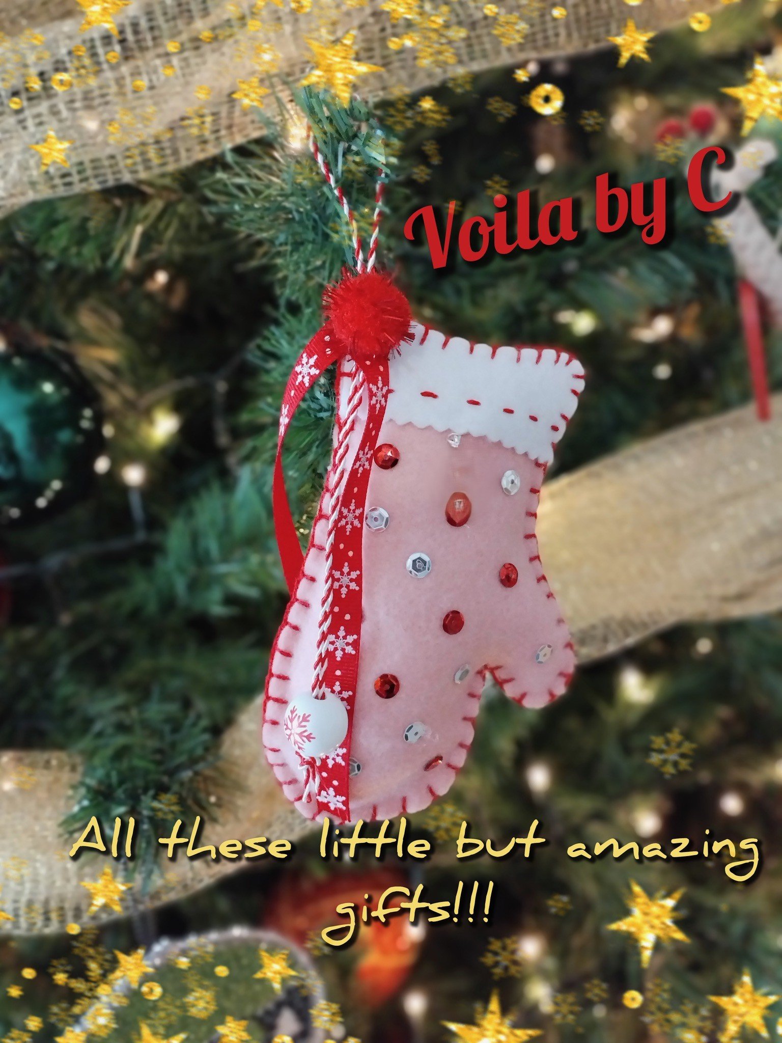 Φτιαγμένο από φετρίνα σε διάφορα χρώματα , κεντημένο στο χέρι , και διακοσμημένο με παγέτες!