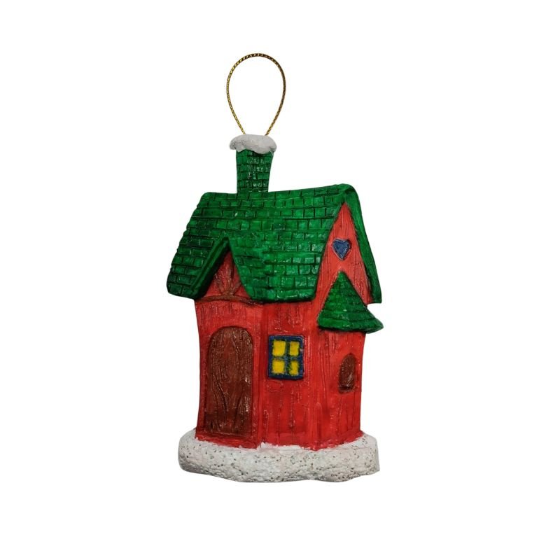 Χριστουγεννιάτικο στολίδι, σπιτάκι βαμμένο με ακρυλικά χρώματα και έχει περαστεί βερνίκι νερού.