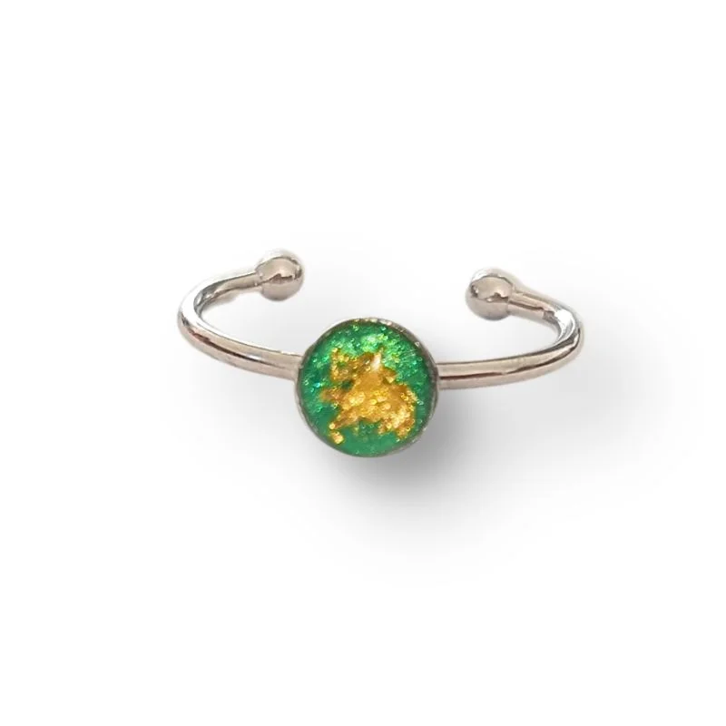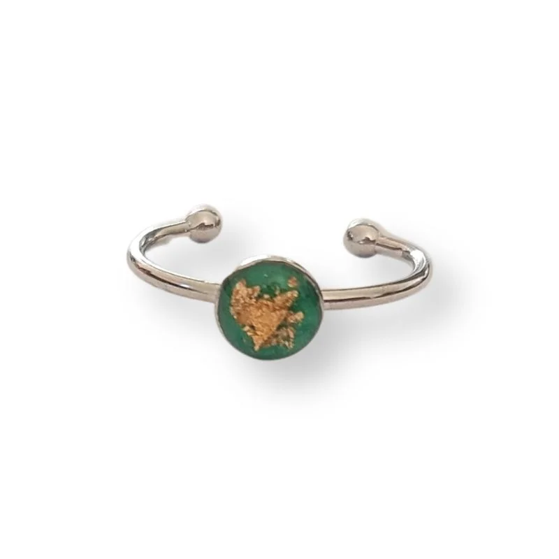 Δαχτυλίδι από υγρό γυαλί Κύκλος, Πράσινο με φύλλα χρυσού