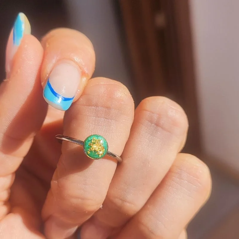 Αξιολογήστε πρώτοι το προϊόν “Δαχτυλίδι από υγρό γυαλί Κύκλος, Πράσινο με φύλλα χρυσού”