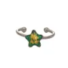 Δαχτυλίδι από ανοξείδωτο ατσάλι, σε ορθογώνιο. Πράσινο με φύλλα χρυσού. Σε στυλ vintage.
