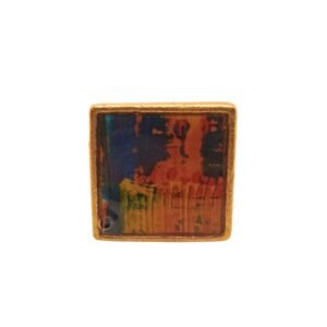 Δαχτυλίδι, τετράγωνο, με χρυσαφί αντικέ βάση, αυξομειούμενο, πολύχρωμο, με απεικόνιση abstract εικόνας και επικάλυψη υγρού γυαλιού.