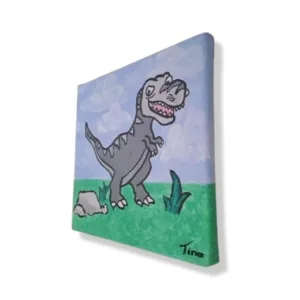 Δεινόσαυρος τυραννόσαυρος Ρεξ ζωγραφισμένος με ακρυλικά χρώματα σε καμβά.
