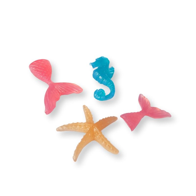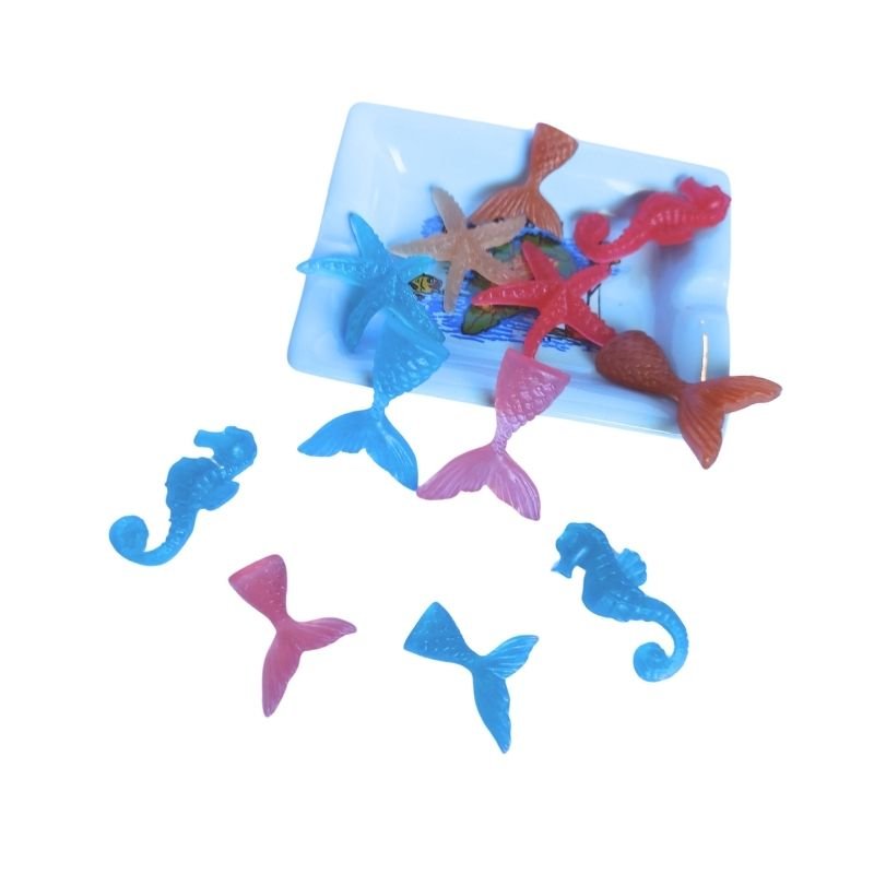 Μικρά διακοσμητικά στοιχεία θάλασσας όπως ιππόκαμπος, αστερίας και ουρά γοργόνας σε δύο μεγέθη, για τις μπομπονιέρες της βάφτισης ή για κεράσματα.