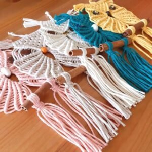 Μακραμέ κρεμαστό διακοσμητικό τοίχου κουκουβάγια από βαμβακερό νήμα.