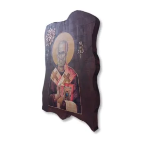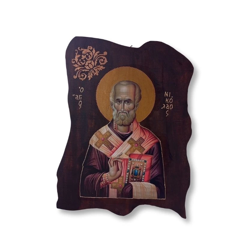 Χειροποίητη εικόνα του Αγίου Νικολάου σε φυσικό ξύλο σε διάσταση 35*25*2,5 εκατοστά.