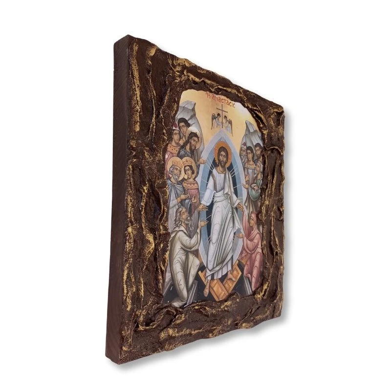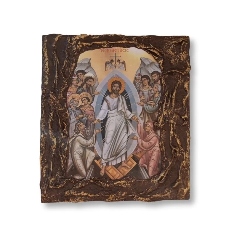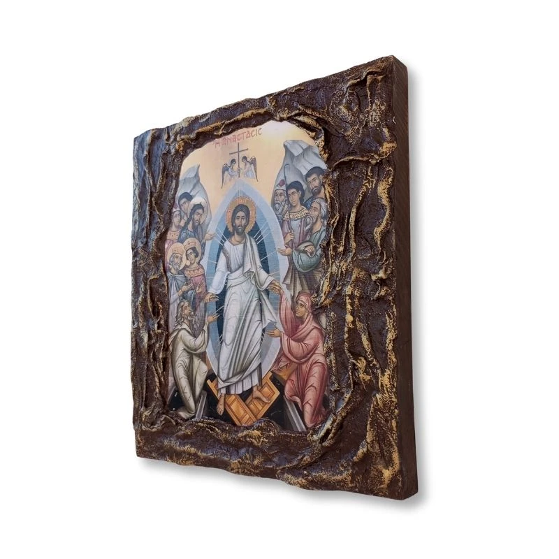 Χειροποίητη εικόνα με την Ανάσταση του Χριστού σε φυσικό ξύλο σε διάσταση 29*26*2,5 εκατοστά.