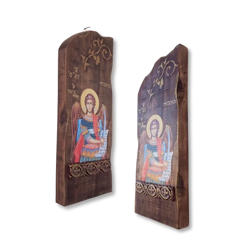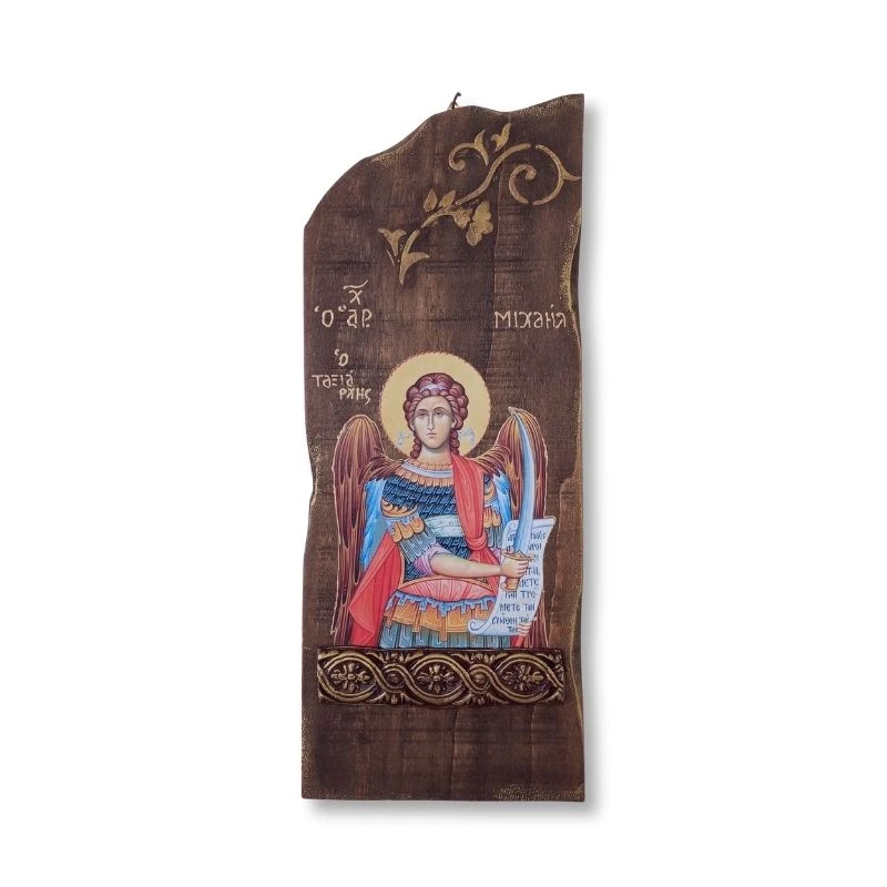 Χειροποίητη εικόνα αρχάγγελου Μιχαήλ, σε φυσικό ξύλο σε διάσταση 34*14*2,5 εκατοστά.