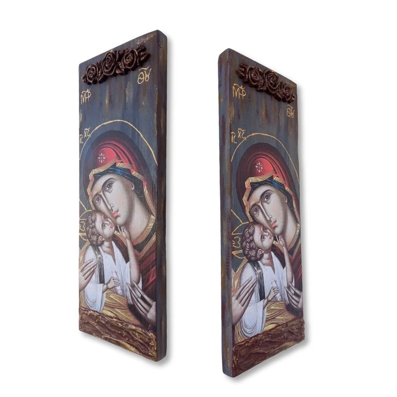 Χειροποίητη εικόνα Παναγίας Γλυκοφιλούσας σε φυσικό ξύλο σε διάσταση 38*14 εκατοστά.