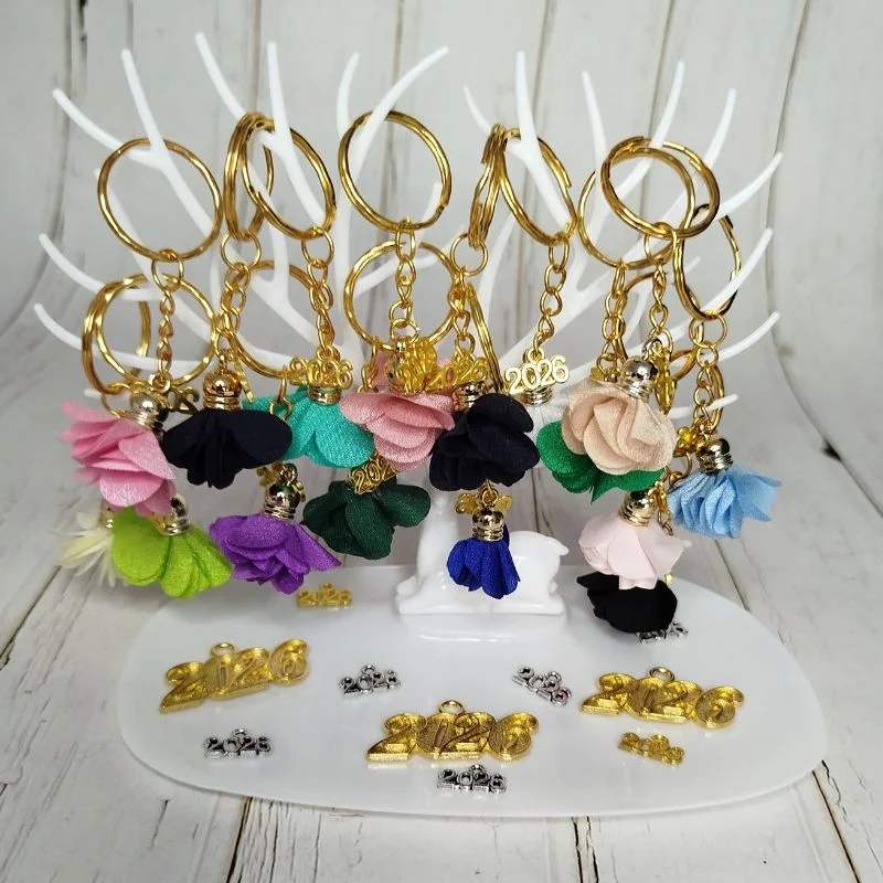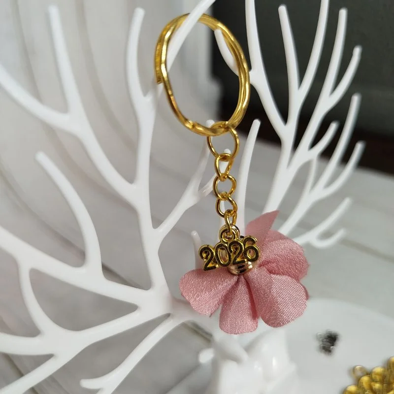 Επίχρυσο μπρελόκ γούρι 2026 με φουντίτσα σε χρώματα: άσπρο, μαύρο, πράσινο, μπλε, μωβ, σκούρο μπλε, λαχανί, ροζ.