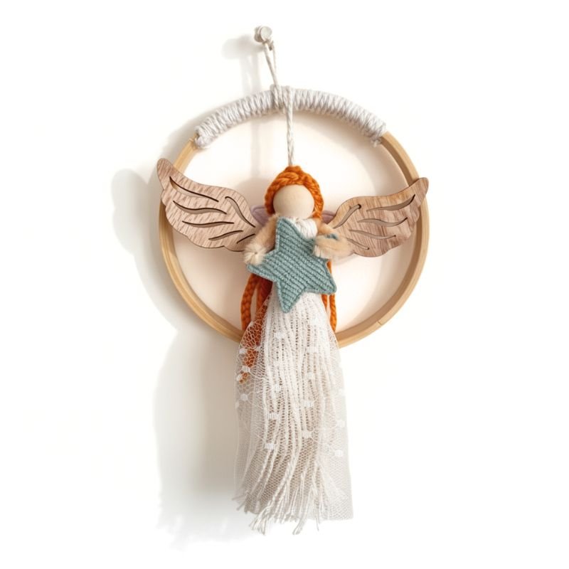 Μια διακριτική χειροποίητη δημιουργία σε γήινους τόνους, σχεδιασμένη να προσθέτει ζεστασιά στον χώρο. Κατασκευασμένο στο χέρι με φυσικά υλικά, προσοχή στη λεπτομέρεια και αγάπη για το απλό. Ιδανικό για το βρεφικό παιδικό δωμάτιο, ή ως διακριτικό και πρωτότυπο δώρο.