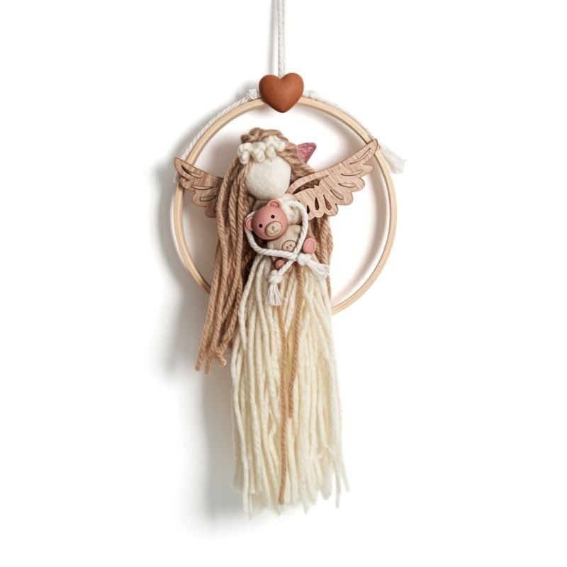 Μια διακριτική χειροποίητη δημιουργία σε απαλούς τόνους, σχεδιασμένη να προσθέτει ζεστασιά στον χώρο. Κατασκευασμένο στο χέρι με φυσικά υλικά, προσοχή στη λεπτομέρεια και αγάπη για το απλό. Ιδανικό για το βρεφικό παιδικό δωμάτιο, ή ως διακριτικό και πρωτότυπο δώρο.