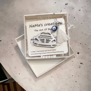 Φυλαχτό αυτοκινήτου σε ασημί χρώμα. Το αυτοκινητάκι είναι πλαστικό με ασημί επίστρωση και έχει χαραγμένη τη φράση