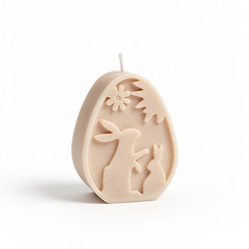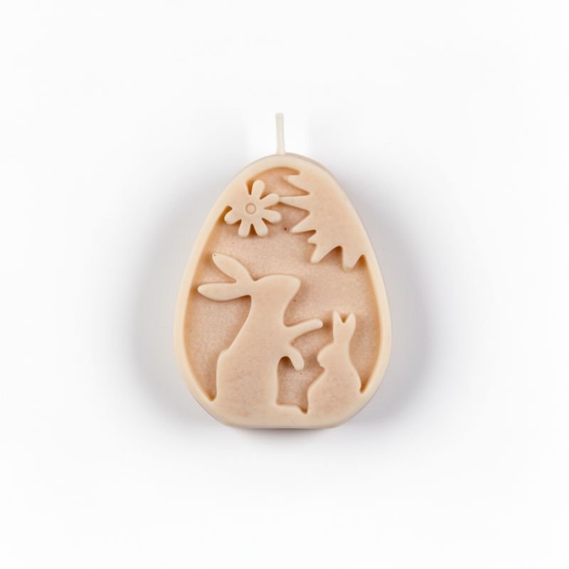 Φυτικό κερί σε σχήμα αυγού και ανάγλυφα σχέδια στο μπροστινό μέρος του.