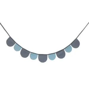 Υφασμάτινη γιρλάντα που αποτελείται από 9 οβάλ σημαιάκια σε δύο μεγέθη με συνολικό μήκος 1,80 m. Ραμμένη με 100% βαμβακερά υφάσματα.