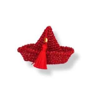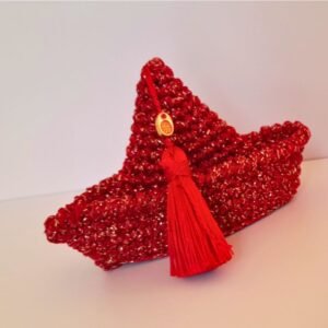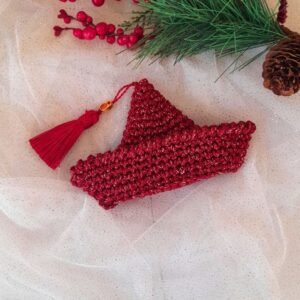 Γούρι 2025 πλεκτό καραβάκι από νήμα με μεταλλόνημα όπου χαρίζει γυαλάδα!