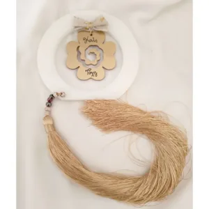 Διακοσμείται με κεραμικές χάντρες, μεταλλικό charm “2026” και μεταξωτή χρυσή φούντα, για γιορτινή αίσθηση και τύχη στη νέα χρονιά.