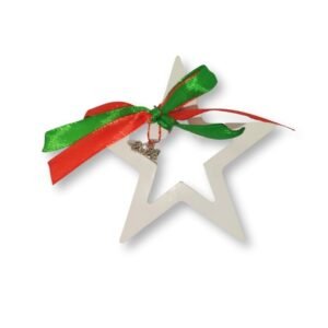 Το λευκό της πορσελάνης σε συνδυασμό με τις κορδέλες κόκκινες και πράσινες χαρίζουν ένα γιορτινό και λαμπερό αστέρι ιδανικό δώρο γούρι για τα Χριστούγεννα και την νέα χρονιά!