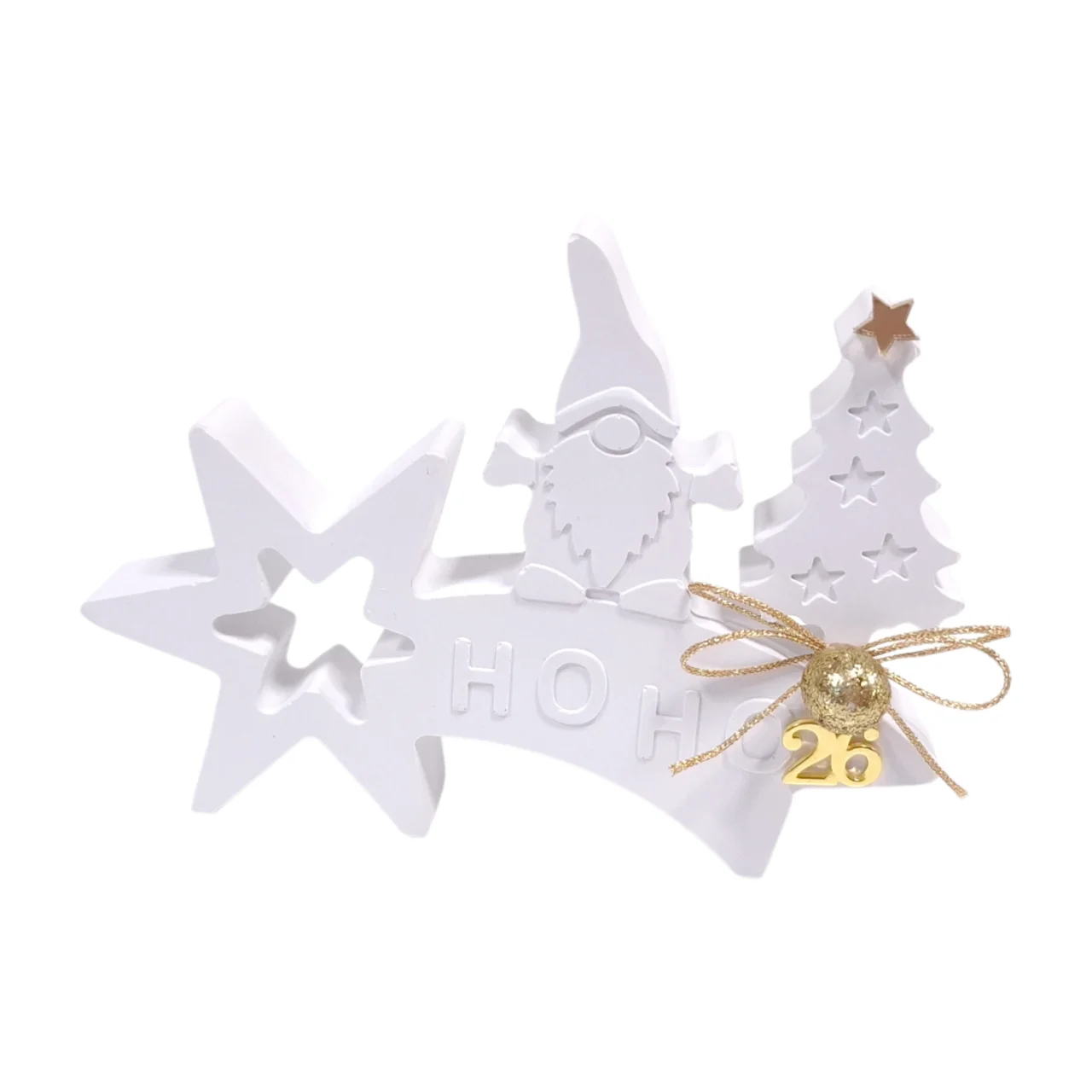 Χριστουγεννιάτικο λευκό-χρυσό διακοσμητικό γούρι φτιαγμένο από σκόνη πορσελάνης.