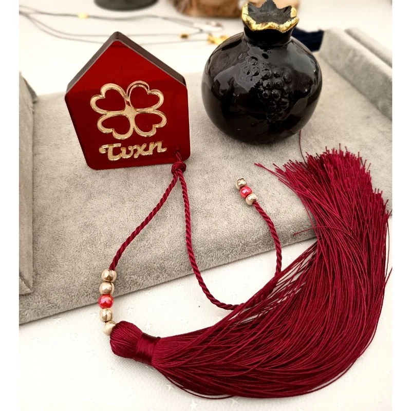 Στοιχεία κεραμικές χάντρες και μακριά κόκκινη φούντα