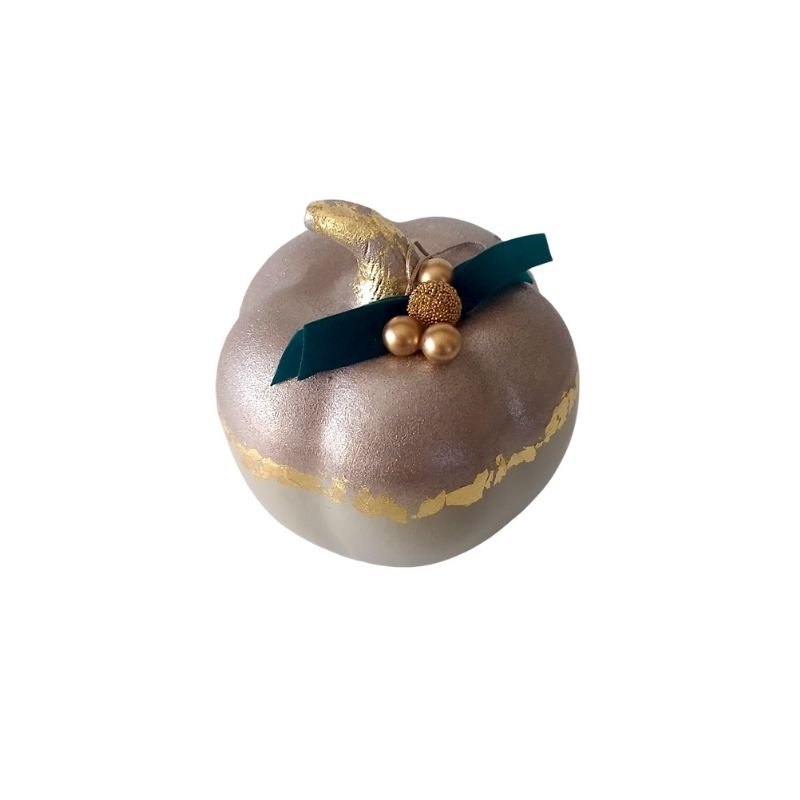 Κεραμική κολοκύθα – γούρι για τη νέα χρονιά σε γκρι και χρυσές αποχρώσεις.