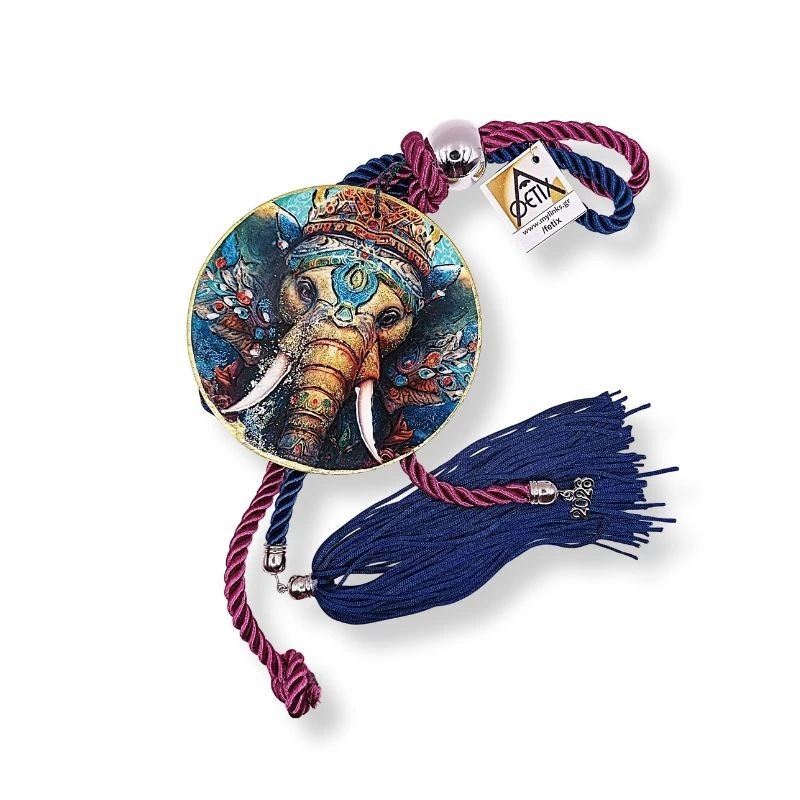 Γούρι ξύλινο στοιχείο Mandala Elephant-9εκ. διάμετρος