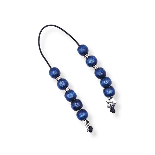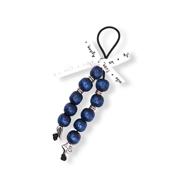 Γουράκι μπεγλεράκι με χάντρες ξύλινες σε μπλε χρώμα, και μεταλλικά στοιχεία σε ασημί. Χάντρα με χαραγμένο “26” από τη μία μεριά και φτερό αγγέλου από την άλλη. Δύο παραλλαγές: μπλε, κόκκινο. Αποστέλλεται με όμορφο αμπαλάζ.