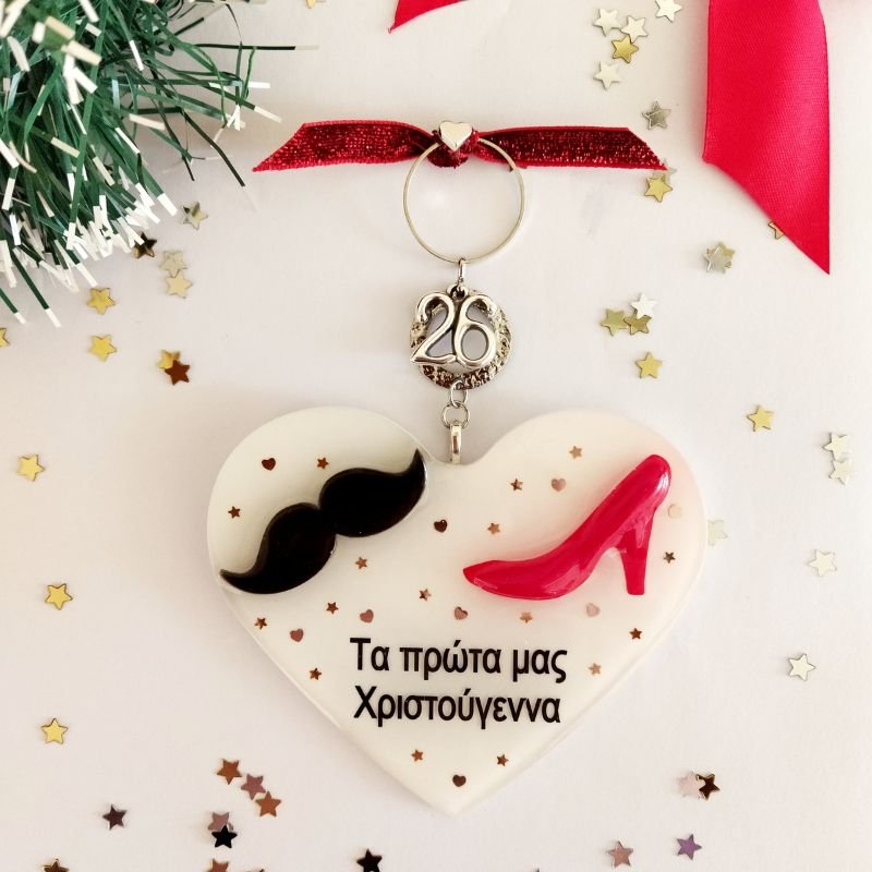 Είναι στολισμένη με αστέρια και μια κόκκινη καρδούλα επίσης φτιαγμένη από υγρό γυαλί στην κοιλίτσα της μαμάς που περιμένει το μωράκι της.