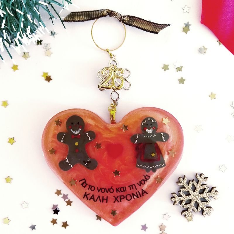 Χειροποίητο γούρι – στολίδι από υγρό γυαλί για το νονό και τη νονά.