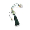 Χάντρα ξύλινη σε και μεταλλικό “26” σε χρυσό χρώμα. Κορδόνι πλεκτό γυαλιστερό καφέ και φούντα μεγάλη σε χρυσό χρώμα. Συνολικό ύψος 25 εκατοστά.