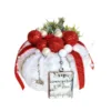 Πλεκτή βελούδινη κολοκύθα, ιδιαίτερα απαλή, σε ιβουάρ, στολισμένη με χρυσαφί μπαλίτσες, χρυσές και κυπαρισσί κορδέλες, πλέξι “Δσκάλα” και μεταλλικά: Καλή Χρονιά και 2026.