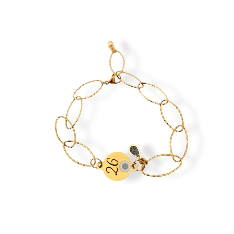 Βραχιόλι γούρι ατσάλινο ματάkι με το 26 σε ατσάλινη αλυσίδα .