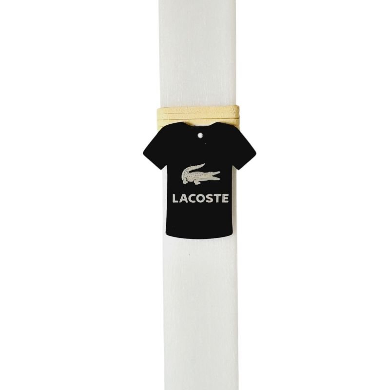 Minimal και στυλάτη χειροποίητη λαμπάδα με διακοσμητικό στοιχείο σε σχήμα μαύρου t-shirt, ιδανική για λάτρεις του casual και μοντέρνου στυλ.