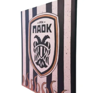 Tο λογότυπο της γνωστής αθλητικής ομάδας ζωγραφισμένο με ακρυλικά χρώματα σε καμβά τελαρωμανο.