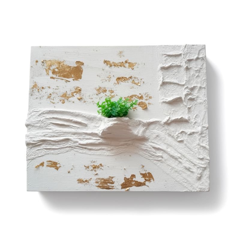 Καμβάς λευκός με πτυχές από υλικό γύψου με θήκη για λουλούδι και γραμμές από ψευδόχρυσο.