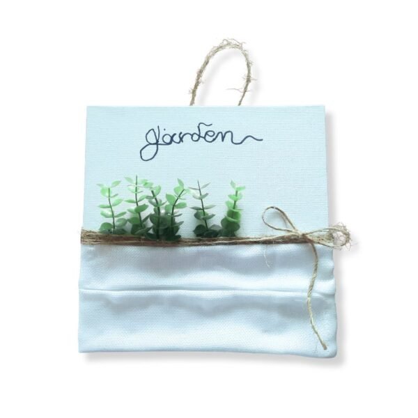 Καμβάς “garden” με λευκό ύφασμα και “πτυχές” με λεπτομέρεια λουλούδια και σπάγκο.