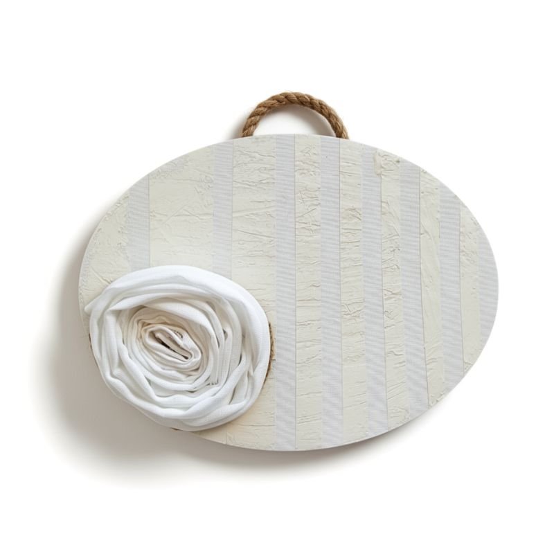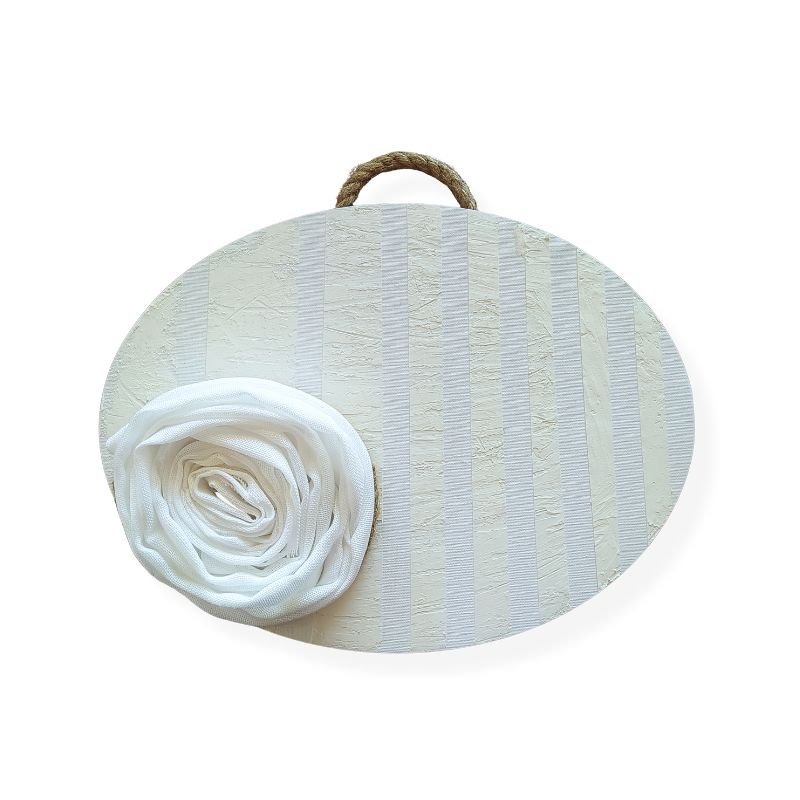 Λευκός καμβάς με τεχνοτροπία με ρίγες σε minimal στιλ με πινελιά ρομαντισμού στο “τριαντάφυλλο” που δημιουργήθηκε από ύφασμα.