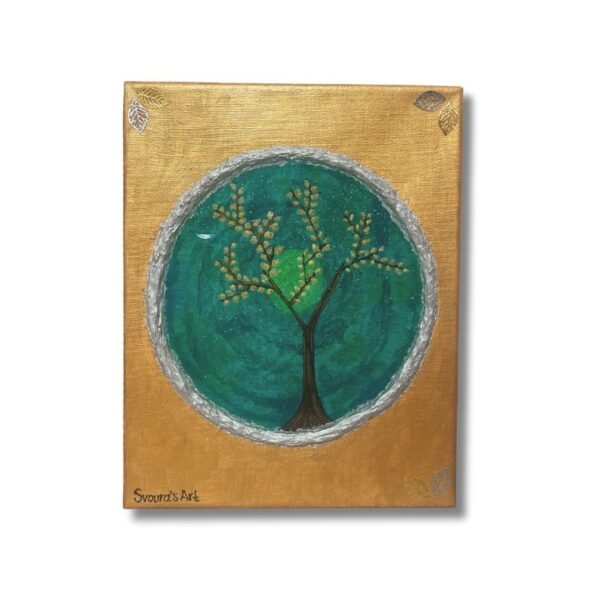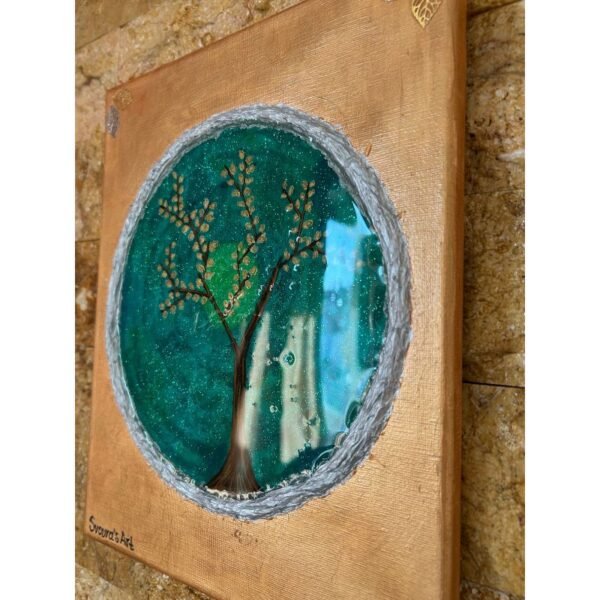 Είναι βγαλμένο από την φαντασίωση όπου βρισκόμουν στο χωριό και κοιτάζοντας έξω από το παράθυρο αντίκριζα το δέντρο της ζωής με τα χρυσαφένια φανταχτερά του φύλλα σε ένα καταπράσινο τοπίο.