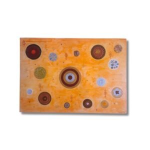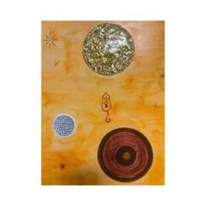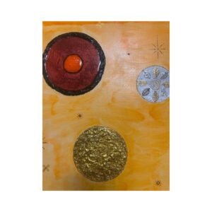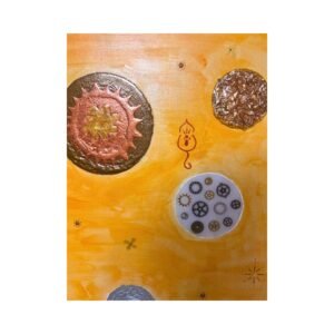 Καμβάς ζωγραφισμένος με ακρυλικά χρώματα, υγρό γυαλί, φύλλα χρυσού, πετρούλες από την θάλασσα και διάφορα στοιχεία. Άφησα την φαντασία μου ελεύθερη και βγήκε αυτό το αποτέλεσμα.