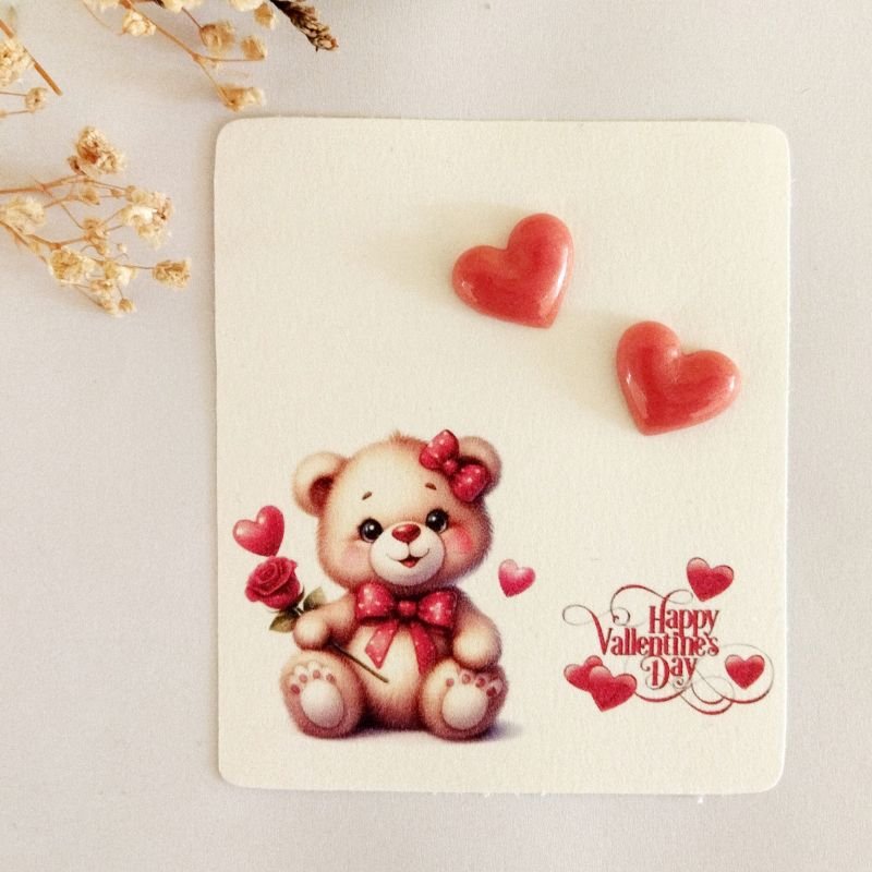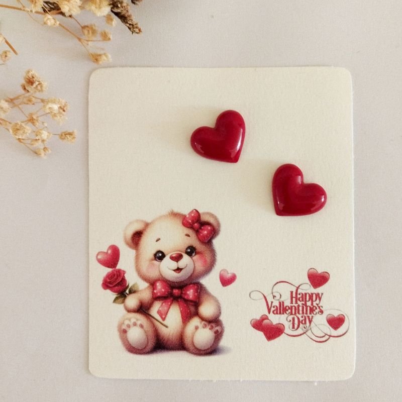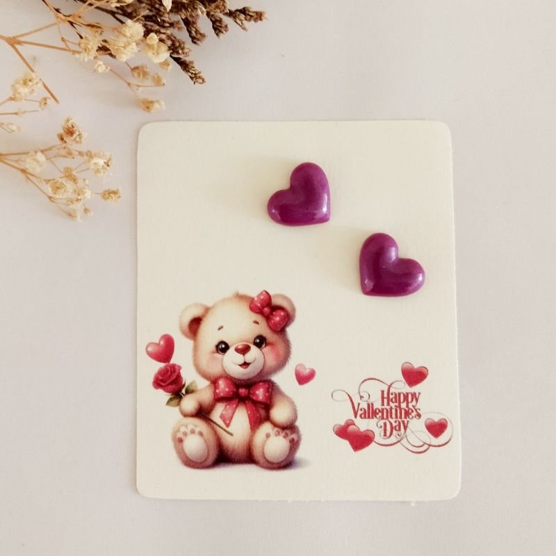 Καρφωτά σκουλαρίκια μικρές καρδιές χειροποίητα από υγρό γυαλί.