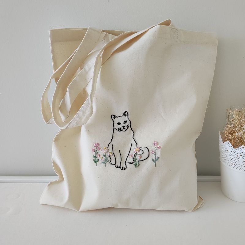 Κεντημένη πάνινη τσάντα “Γάτα” (37×41 εκ.)