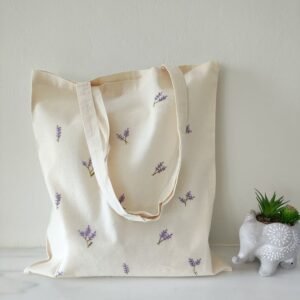 Κεντημένη πάνινη τσάντα “Λεβάντες”(37×41 εκ.)