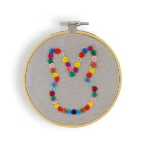 Ένα μοναδικό χειροποίητο καδράκι με κεντημένο λαγουδάκι, διακοσμημένο με πολύχρωμες λεπτομέρειες που χαρίζουν ζωντάνια και ζεστασιά σε κάθε χώρο.